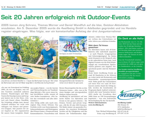 20 Jahre 4wellbeing: Publireportage zu unserem Jubiläum 2025.